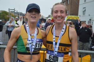 The women’s race was a closer affair, with Leevales Niamh Moore and Ciara Hickey of Brothers Bearse AC locked in a massive battle for large parts of the race. It was Hickey (just) who led the pair through the first lap, but when they reappeared at the finish at the end of lap 2, Moore had made the decisive move, winning the race in 1:18:44, 30s clear of Hickey in second. Laura Noonan completed the podium, coming in in 1:27:08.