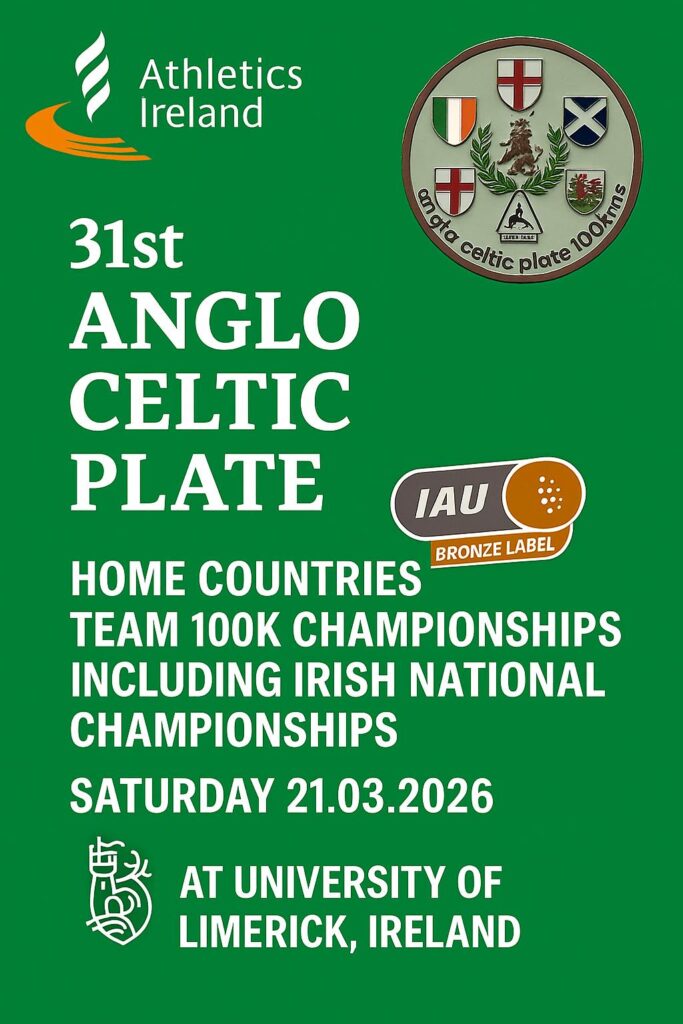 Results page for the 2026 Anglo Celtic Plate, incorporating the Irish 100km Championships
