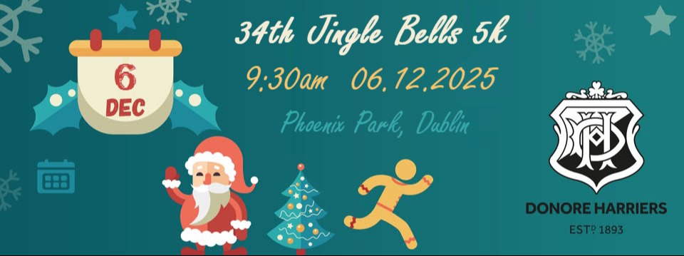 The annual Jingle Bells 5km Road Race and Family Fun Run, now in it’s 34th year, takes place in the Phoenix Park, Dublin on Saturday, 6th December, 2025 at 9.30am.
