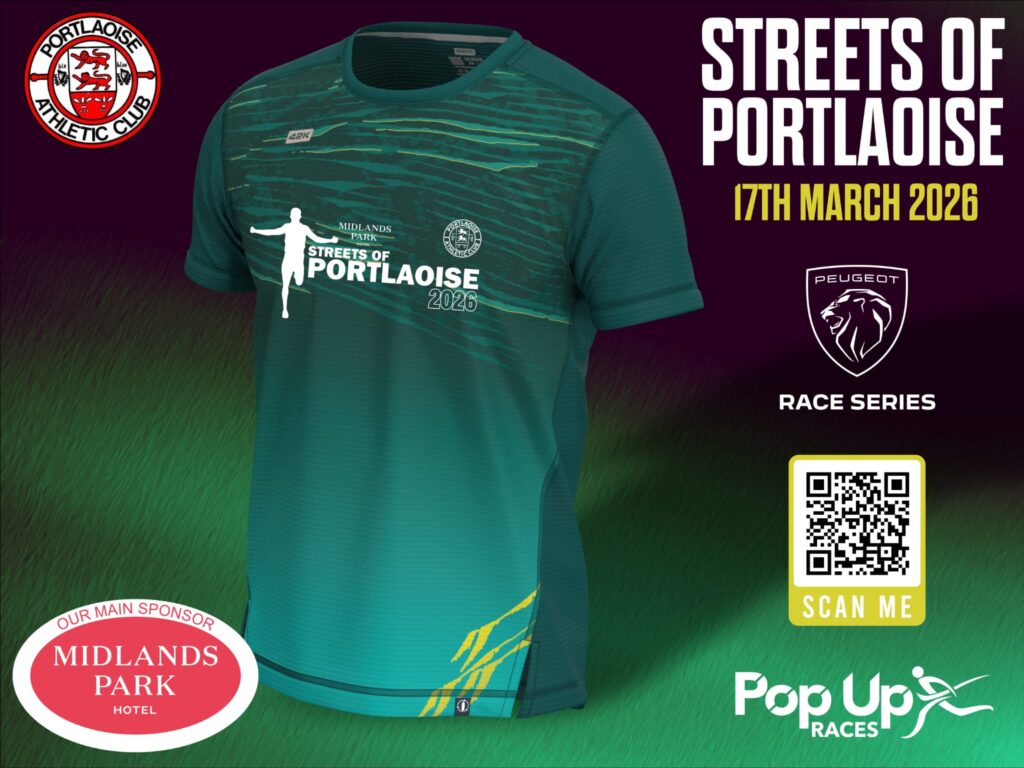 Portlaoise AC’s St Patrick’s Day 5K road race around the streets of Portlaoise. The course is a fast relatively flat course with a town centre finish.